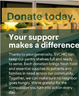 Your gift today helps keep our pantry shelves full—and ensures families have food on the table. Thank you for your support!